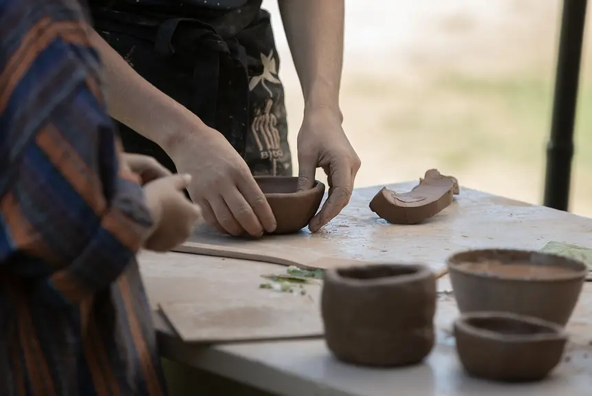 Darbnīcā katrs dalībnieks, arī bez priekšzināšanām, varēs izveidot 1–2 nelielus trauciņus – krūzīti, bļodiņu vai podiņu. Mācīsimies izmantot māla brīnišķīgās īpašības – tā plastiskumu un spēju atdarināt dabas faktūras, piemēram, augu, kociņu, giemžvāku nospiedumus