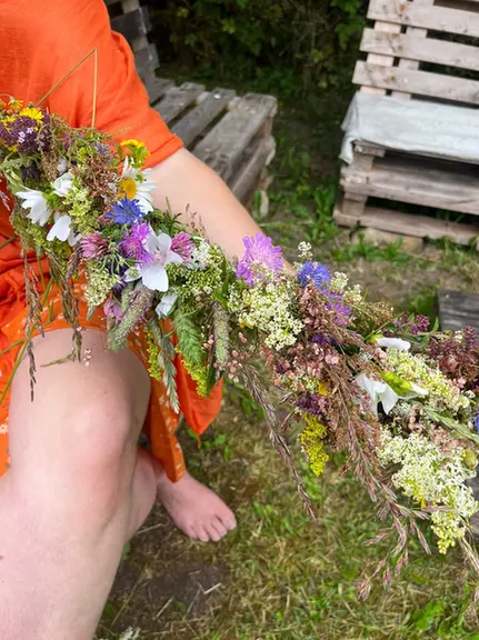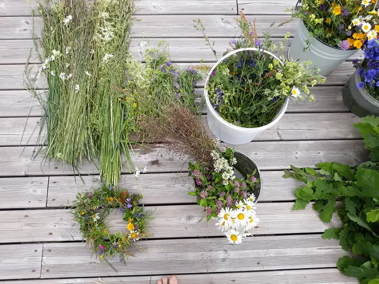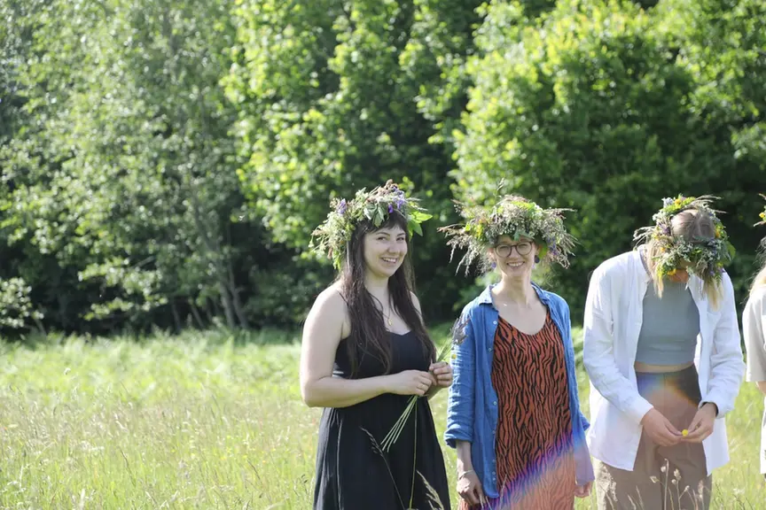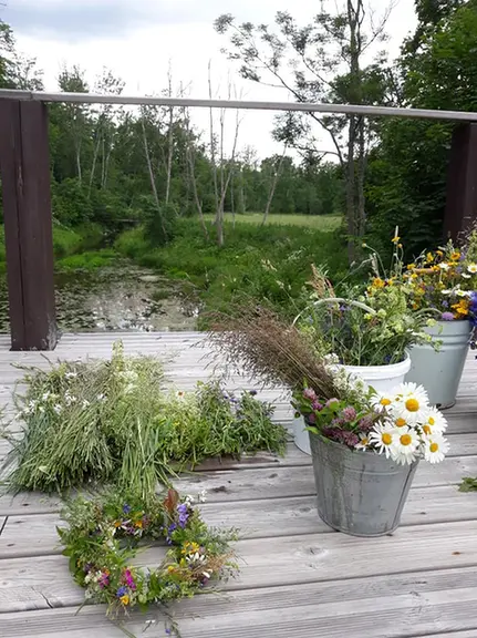 No agra pavasara līdz vēlam rudenim aicinu iebrist pļavā. Vainagu pīšanas darbnīca – rāmā, sievišķīgā un iedvesmojošā atmosfērā.