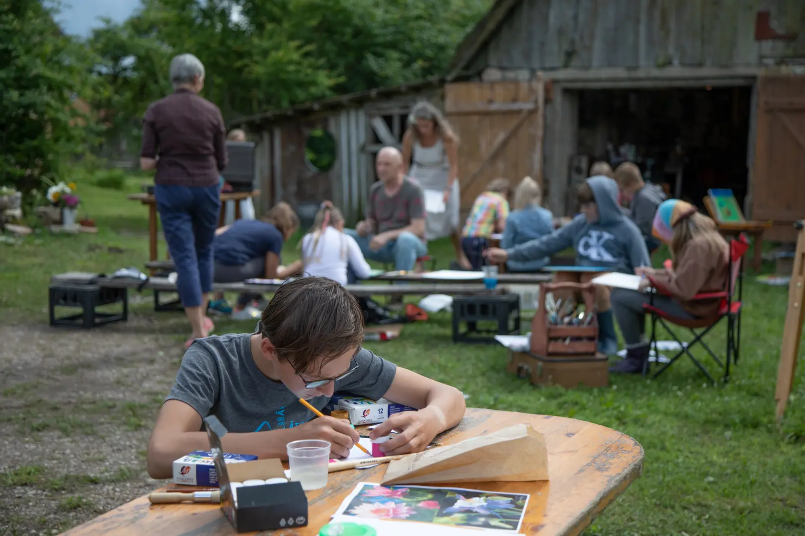 Gleznošana. Darbnīcas vadītāja – gleznotāja, keramiķe Katrīna Vīnerte(Talsi). Darbnīcas dalībnieki varēs strādāt patstāvīgi vai konsultējoties un gleznojot kopā ar darbnīcas vadītāju visas nedēļas garumā. Darbnīcā var piedalīties pieaugušie, bērni ar vai bez priekšzināšanām un spēju strādāt individuāli. Cilvēku skaits grupā – 30. Gleznošanas materiāli jānodrošina pašiem dalībniekiem. Jautājumu gadījumā droši varat konsultēties ar pasniedzēju jau pirms plenēra, zvanot- 26448968