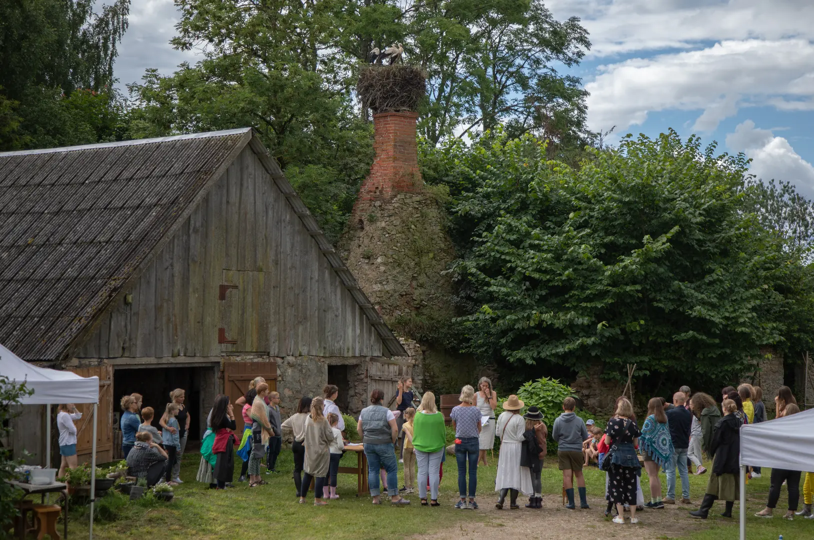 Bērnu skoliņa. Radošas personas, zāļu sievas, pirtnieces Evitas Šmithenas (Talsi) vadībā bērni un pieaugušie varēs iepazīties ar Abavas senlejas pļavu, augiem, uzzināt kā tos izmantot dekoros, veselīgos ēdienos! Var ņemt līdz zīmēšanas, gleznošanas piederumus.