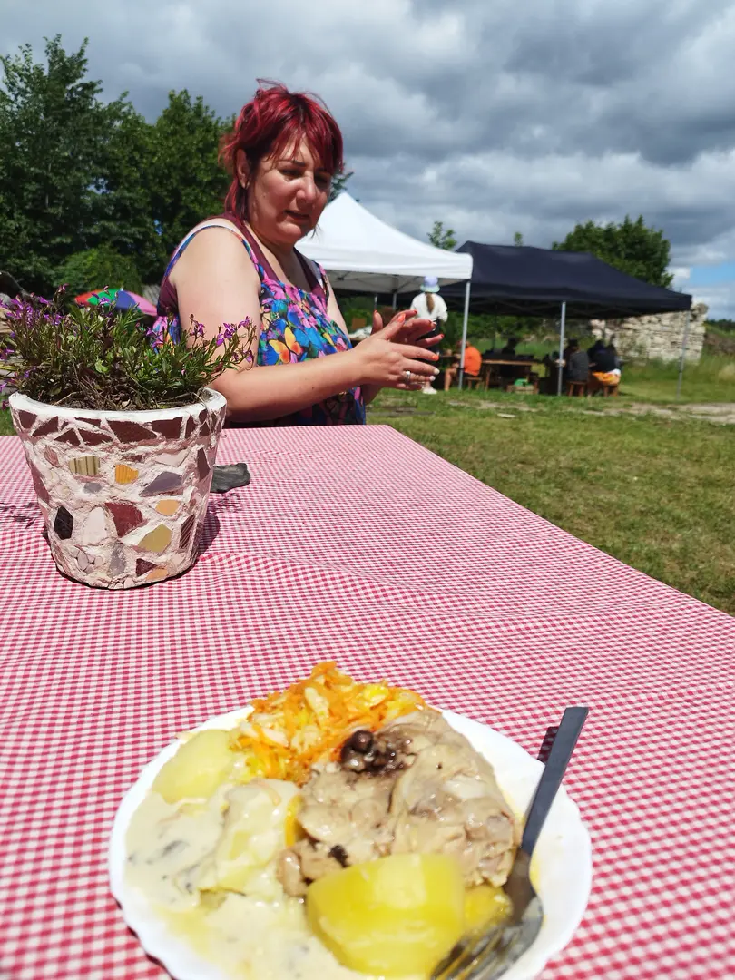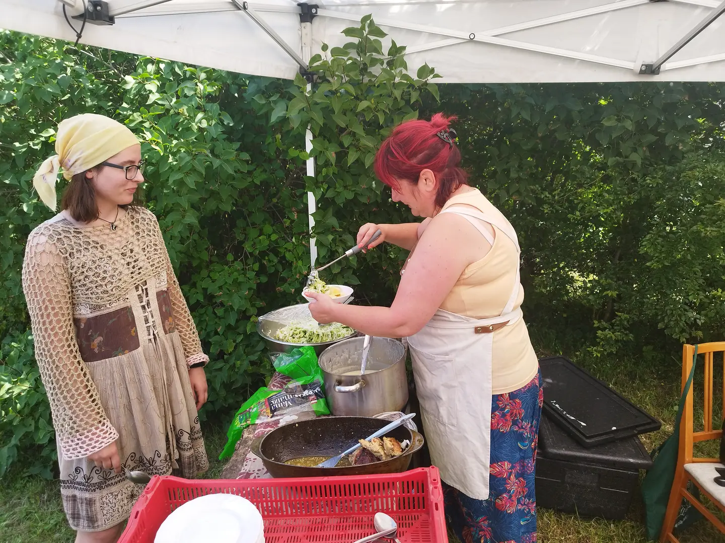 Ēdināšanu nodrošinās Inga Labecka trīs reizes dienā (13.50 € dienā/ no personas). Ir iespēja izvēlēties vienu ēdienreizi (cena 4.50 €). Kopā sanāk 16 ēdienreizes, 72€ Ēdīsim uz vietas un paši mazgāsim savu šķīvīti. Pastāv iespēja meklēt alternatīvas ēdināšanas iespējas un naktsmītnes. Pirmajā dienā būs pusdienas un vakariņas. Pēdējā brokastis un pusdienas.