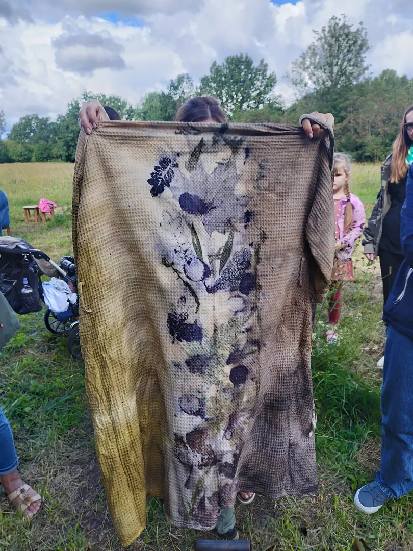 Eko print.(visas vietas aizpildītas) Skolotāja, rokdarbniece Ieva Hofmane no Dobeles parādīs, pastāstīs kā nokrāsot audumu ar augiem. Būs iespēja veidot augu nospiedumus uz tekstila. Jāņem līdz dabīga auduma (kokvilnas) gaišu krekliņu u.c. Nodarbība notiks 17. jūlijā. Rezultāti 18. jūlija rītā. Dalībnieku skaits 15 cilvēki. Pārējie varēs vērot, mācīties.